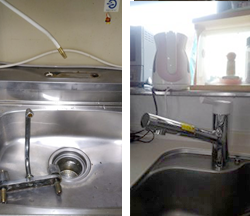 お客様にキレイに戻す方法と簡易的に使えるようにする方法を説明させてもらい今回は簡易的に戻すことになりました。蛇口も新品に交換させてもらいお客様から「手際が良くて関心した。すぐに対応してもらえて助かりました。」とお客様にも大変喜んでいただきました。