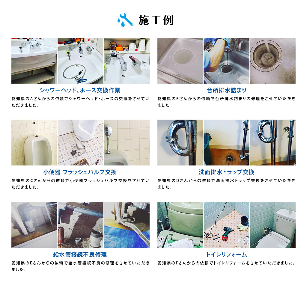GEN水道サービスは愛知県全般を対応エリアとして営業する水道修理業者で、トイレのつまりだけでなく、お風呂場、キッチン、洗面所、給湯器、排水管まで幅広く水道修理に対応できる業者。特徴的なのは、夜間・深夜帯に駆けつけてくれること。「24時間対応」となっていても、受付のみ24時間で実際に駆け付けるのは翌日以降といった業者が多い中で、本当に緊急の際に駆け付けてくれるので非常にありがたい業者です。お見積りも無料で、見積りに納得いただいてから作業開始なので安心!営業時間外や対応地域外のご予約も相談・対応可能ということなので、ぜひご検討ください!