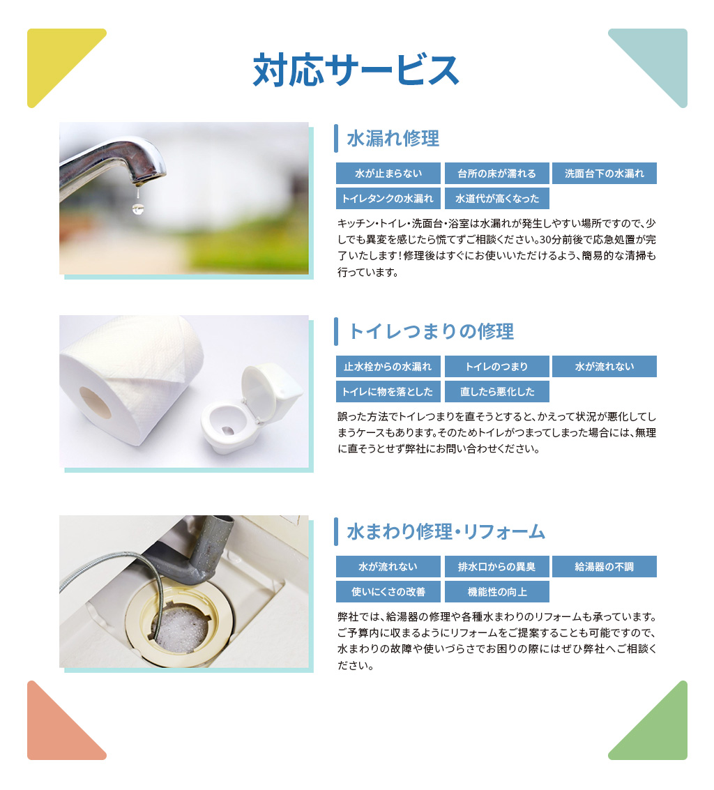 | 実績 | 水道修理歴20年 |