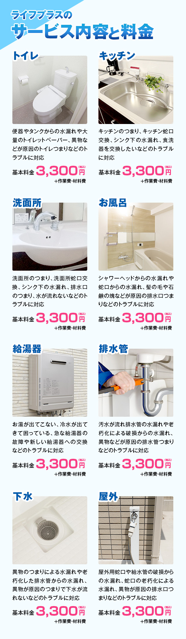 | 料金・参考工賃 | 基本料金3300円~ |