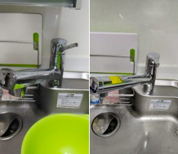 状況をご説明させていただくと、これを機会に問題無く使えるように蛇口を新しく交換してほしいと、作業のご依頼をいただきました。壊れていて動作しない現在の蛇口を取り外し、新しい蛇口の取り付けを行いました。