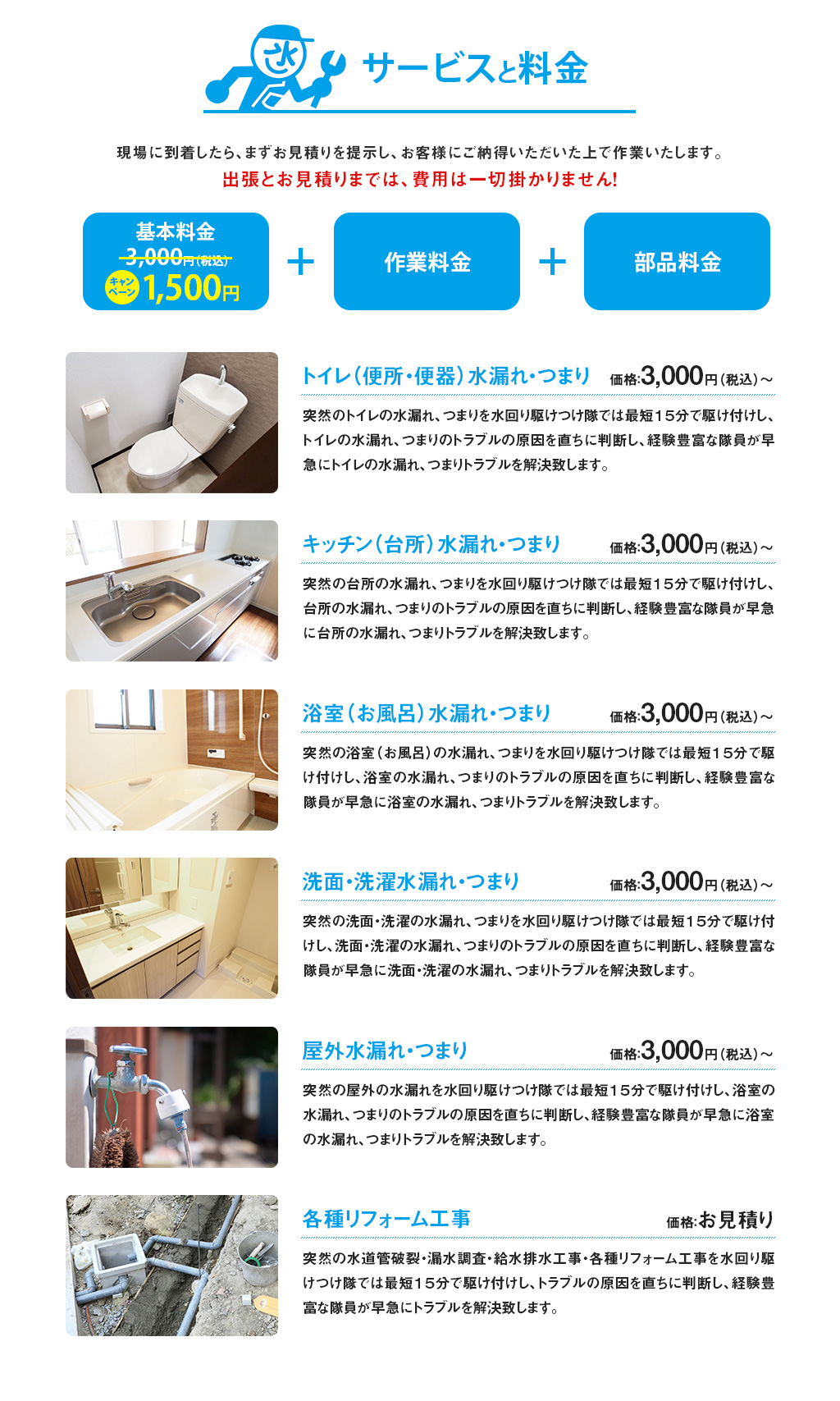 | 実績 | 年間600件以上水回りのトラブルを解決 |